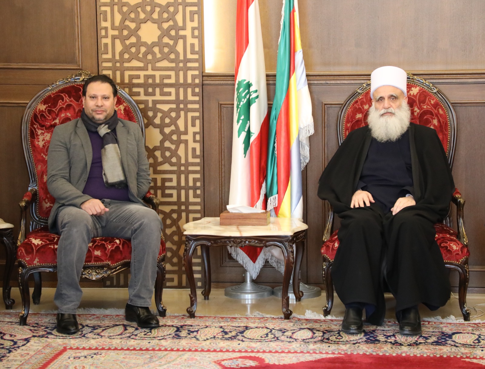 زار وفد من اللقاء الشبابي اللبناني الفلسطيني برئاسة أحمد عبد الله الشاويش شيخ عقل طائفة الموحدين الدروز الشيخ الدكتور سامي أبي المنى.