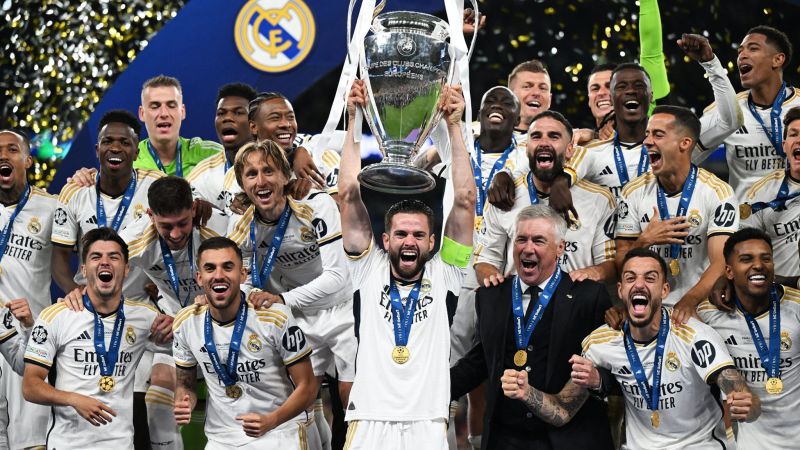 عزز ريال مدريد الإسباني رقمه القياسي بالفوز بدوري أبطال أوروبا لكرة القدم للمرة 15 بتغلبه 2-صفر على بروسيا دورتموند الألماني في النهائي الذي أقيم في ويمبلي، السبت.