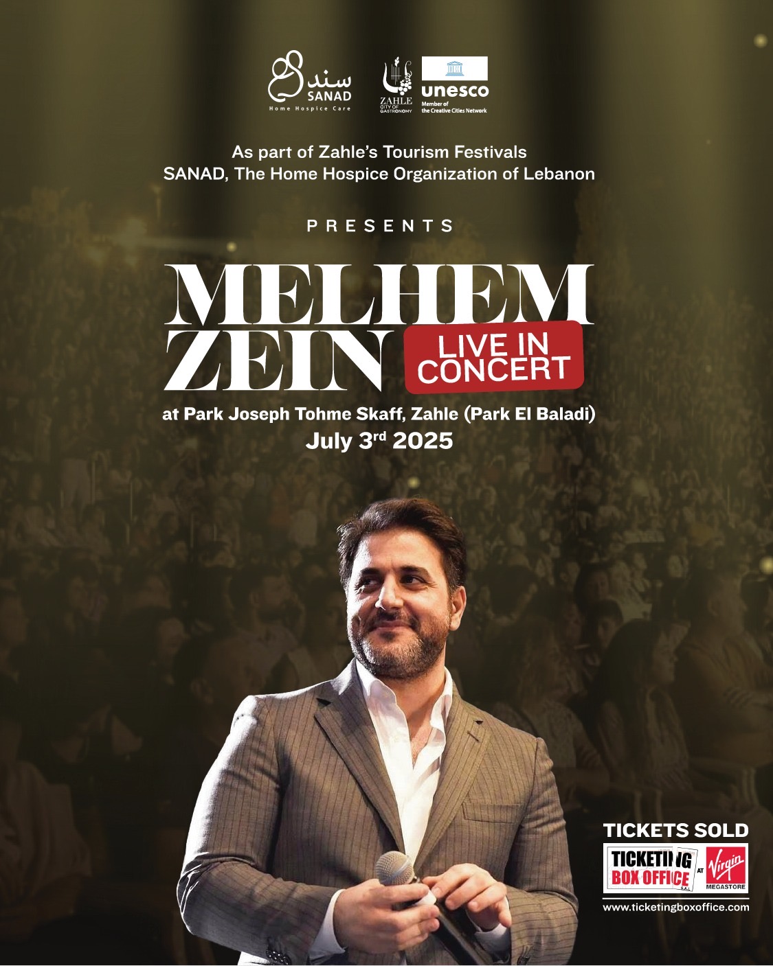 في أمسية مميّزة تَجمع بين الموسيقى والإنسانية، وضمن مهرجانات زحلة السياحية، يُحيي سفير جمعية سند للرعاية التلطيفية في لبنان الفنان اللبناني ملحم زين حفلاً خيرياً يوم الخميس ٣ تموز ٢.٢٥، في حديقة جوزف طعمه سكاف البلدية – زحلة، وذلك بهدف دعم مهمّة جمعية سند.